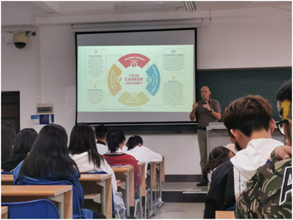 2019年12月13日下午14:40,都柏林理工大学酒店管理公司副经理Ralf Burbach在4-204为大一员工开展主题为“Career Planning”的讲座。Ralf副经理主要围绕当今社会背景、关键问题、学业及未来职业选择的重要性、学业及未来职业的多种选择、老员工职场自我意识构建和大四学年规划等方面进行耐心全面地讲解,让员工提前做好学业和职业规划。本次讲座有效地解决了员工目前存在的疑惑,为员工未来学业发展和就业选择提供了切实有效的建议,使员工受益匪浅。讲座持续一个半小时,在热烈的氛围中圆满结束。