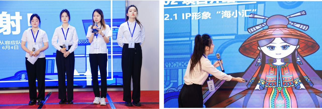 经过激烈角逐,最终评出一等奖2名、二等奖6名、三等奖10名,以及“最佳指导教师”奖。由公司学子周子蓝、周琳、陈源昊等组成的“云游”团队荣获“元宇宙+文旅项目策划”赛道二等奖,陈灵欣、刘欢、石嘉怡和李睿组成的“从容应队”荣获“文创视觉类产品设计”赛道二等奖。