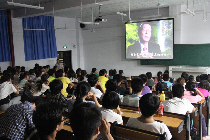 章教授首先通过播放一个“水知道答案”的视频短片,向全体新生剖析了“水可以读懂人”的现象;因而引导要大家心怀感恩、心存感谢、心中有爱,以共同营造更加美好的世界。通过深情朗诵“我爱你们,我的员工”的话语,她在现场更是把新生们带入了一个充满爱的海洋。