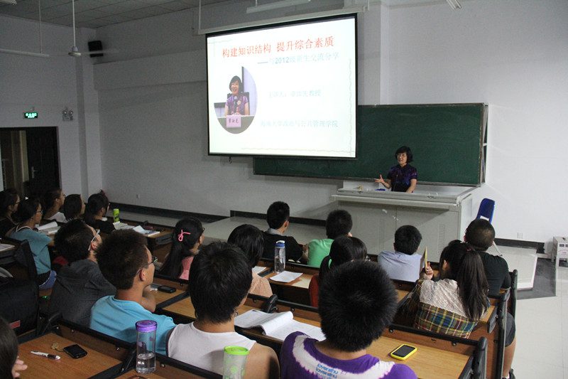 紧接着,章教授向新生集中阐述了综合素质的内涵,并认为包括思想素质、文化素质、业务素质和身心素质;在此基础上,她简要分析了提升综合素质的目标和背景。随后,针对“如何提升综合素质”这一核心问题,她向大家提出了四点建议:一、学好科学知识,构建知识结构;二、参加各种活动,锻炼综合能力;三、正确对待恋爱,追求纯真爱情;四、拥有阳光心态,每天快乐学习。在整个讲述过程中,她把重点放在了分析当代老员工恋爱的五种类型这一命题上,要求新生学会担当,敢于承担责任,正确处理好学业与恋爱等方面的关系,全面明确大学的主要目标与学习任务。同时,她就老员工课外实践活动的参与,也提出了一些合理化的建议。最后,她还勉励在座的新生们,今后要多读圣贤书,勤做儒雅人。此外,她对“做人是一辈子的事,做事是一阵子的事”、“学之道,贵以专,贵以深”、“书山有路勤为径,学海无涯苦作舟”等道理的解读,令大家印象尤为深刻、以致许久不能释怀。伴随着全场听众热烈的掌声,本次讲座得以圆满结束。