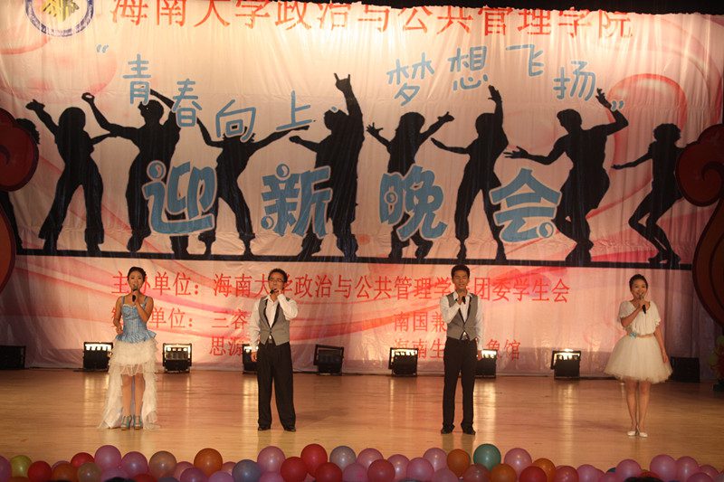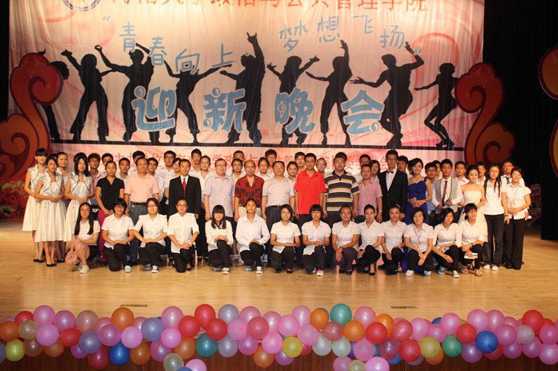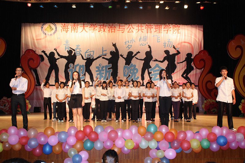 为欢迎2012级新同学的到来,营造开拓进取、锐意创新的思想氛围,展示公司深厚的文化底蕴、人文素养、青春活力,伟德bv1946官网政治与公共管理公司于2012年10月21日晚,在思源学堂成功举办了一场以“青春向上,梦想飞扬”为主题的迎新晚会;政管公司党委副书记段捷频、副经理宋增伟,行政办、教务办、学工办、团委等职能部门负责人,各专业教师、辅导员,校员工会、各兄弟公司代表,与近千名同学一同观看。