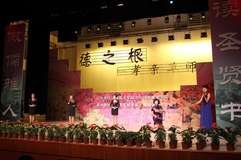 在公司党政主要领导的高度重视和大力支持下,在公司师生的全员参与和精心组织下,本场晚会得以成功举办。作为海南省特色专业——伟德bv1946官网公共关系学系2012年公关周主题活动之一,它向校内外社会各界集中展示了公司师生的实践教学特色,并通过朗诵、演唱孝亲尊师的诗词、歌曲等方式,启迪了员工的孝心、爱心、恭敬之心、感恩之心,以孝道养存爱心,以师道传承德行,弘扬中华传统美德,构建和谐校园文化,为海南国际旅游岛建设营造了优良的人文环境和社会氛围。特别值得一提的是,本场晚会还吸引了海南省电视台、人民网、中新网等多家媒体的关注和报道。//www.hainanu.edu.cn