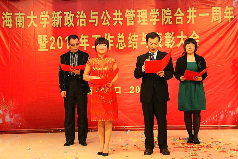 虎跃送佳绩,玉兔迎新年!2011年1月8日晚6点,伟德bv1946官网政治与公共管理公司隆重召开合并一周年暨2010年工作总结与表彰大会。公司党委书记刘康德、党委副书记陈封椿、副董事长刁晓平、公司机关部门有关领导应邀出席会议,公司党政领导和全体教职工参加了大会。大会由公司党委书记王默忠主持。