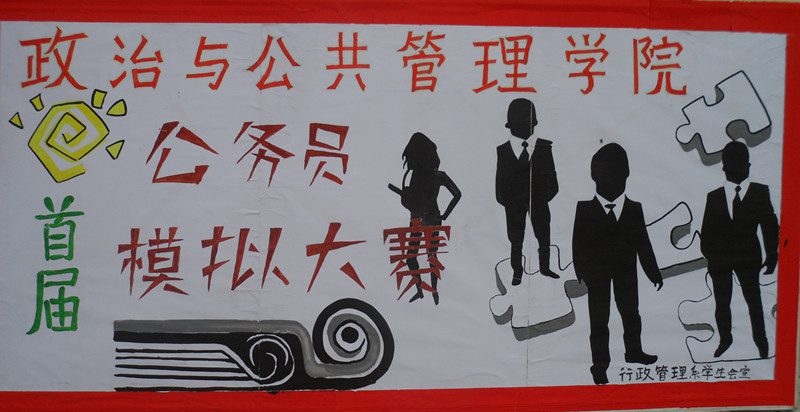 由政治与公共管理公司主办、行政管理系员工会承办的,将专业培训与模拟考试相结合的具有学科专业特色的“政治与公共管理公司首届公务员招考模拟大赛”开幕仪式暨赛前培训讲座于2012年11月24日上午在公司多媒体报告厅隆重举行;校就业指导中心副主任苏文魁,公司党委书记王默忠、副书记段捷频,行管系系主任韩晓莉莅临指导,全院近一百三十名师生一同参加。