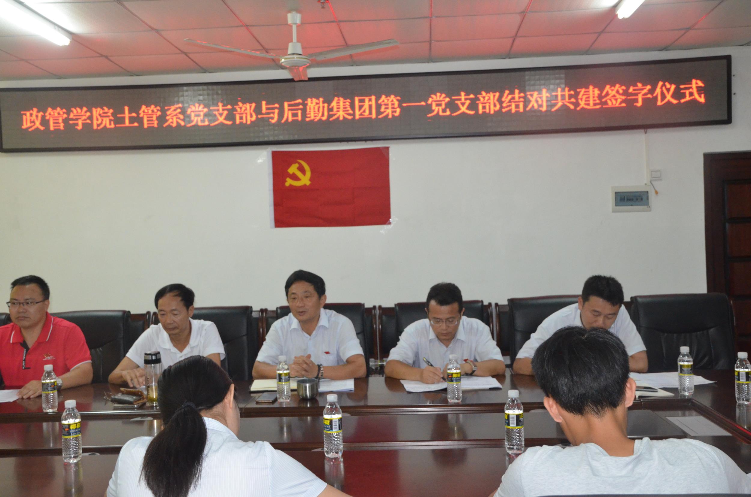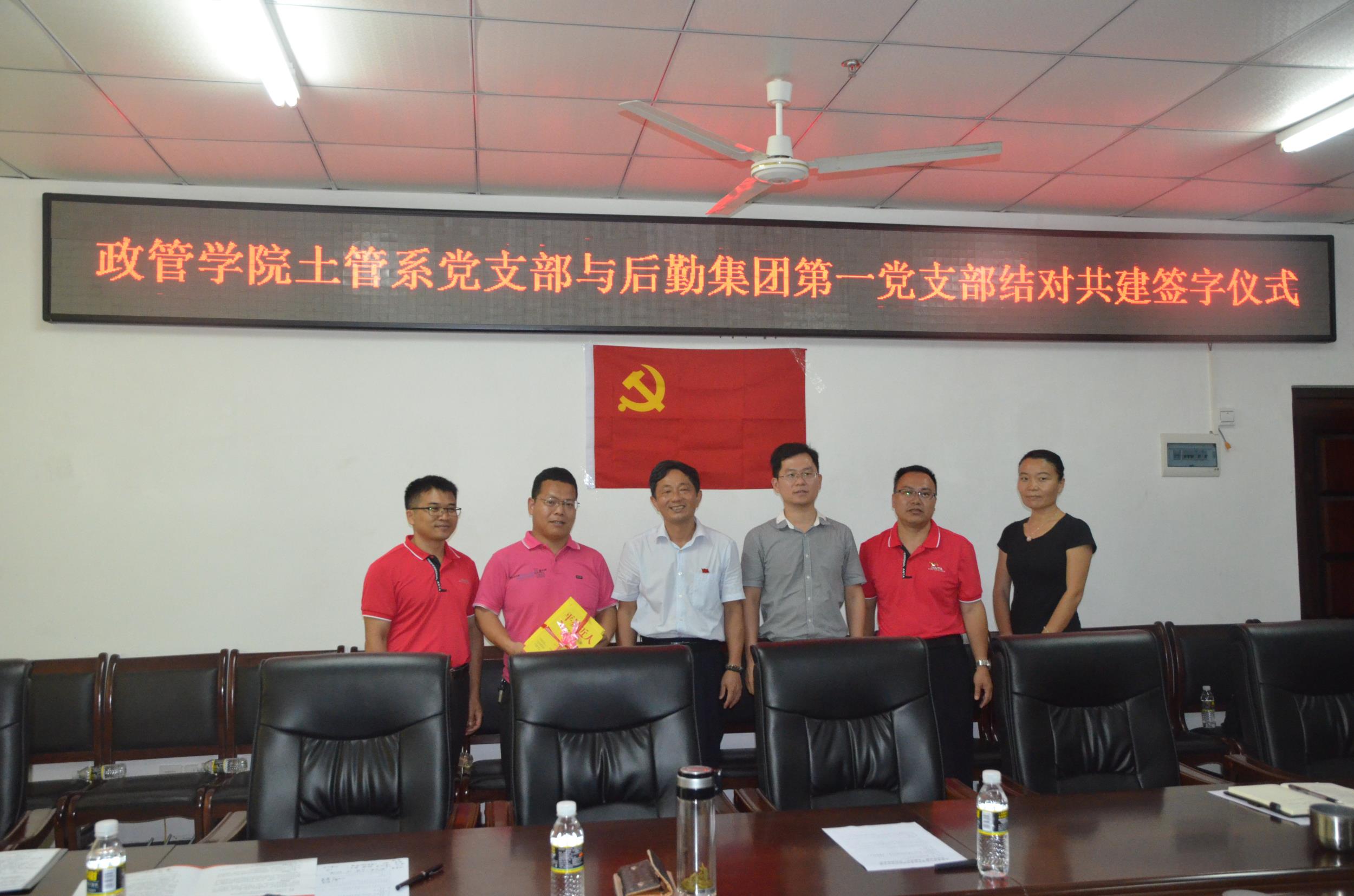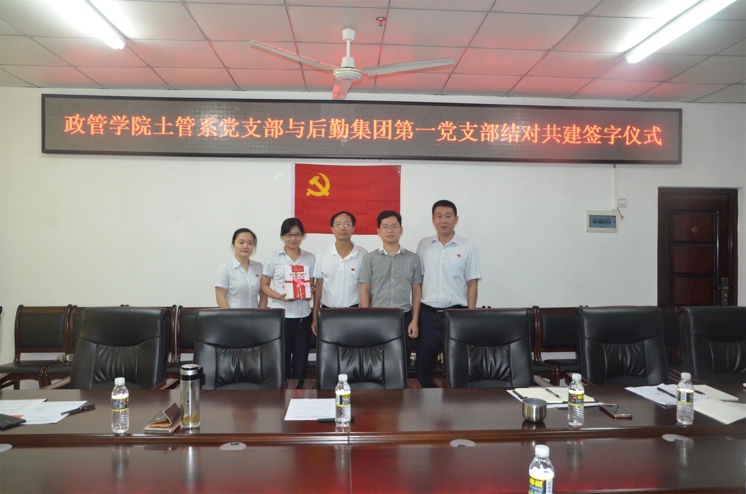 为持续推进“两学一做”学习教育,切实加强和创新基层服务型党组织建设,搭建党员交流平台,丰富党支部组织生活形式,创新和激发基层党组织活力,形成“资源共享、党建共做、优势互补、协调发展”的基层党建工作新格局,不断提高基层党组织的凝聚力、战斗力和创造力。2017年4月21日上午,中共政治与公共管理公司土地资源管理系党支部与中共后勤集团第一党支部签订基层党组织结对共建协议。伟德bv1946官网组织部组织科陈青科长、政治与公共管理公司党委王默忠书记、后勤集团党委李海清书记、后勤集团党委徐小华委员、土管系及后勤集团第一党支部全体党员等出席了签字仪式,会议由政管公司党务工作联系人唐名胜老师主持。