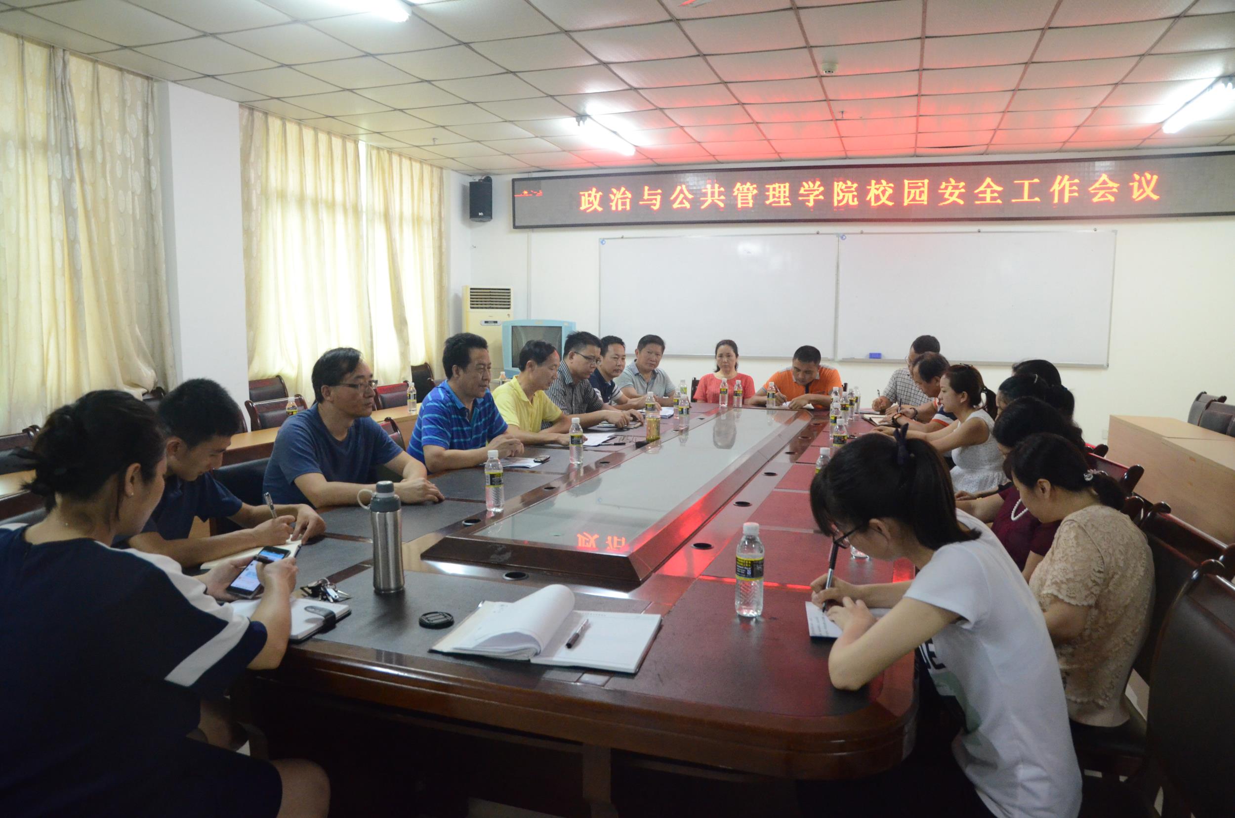 4月11日,政治与公共管理公司在社科楼A216会议室召开校园安全工作会议。党委书记王默忠,经理张治库,副经理江红义、李宜钊、周伟,副书记邢红斌,各教研室主任,各实验室管理人员,二级图书馆人员和行政人员参加了会议。会议由张治库经理主持。