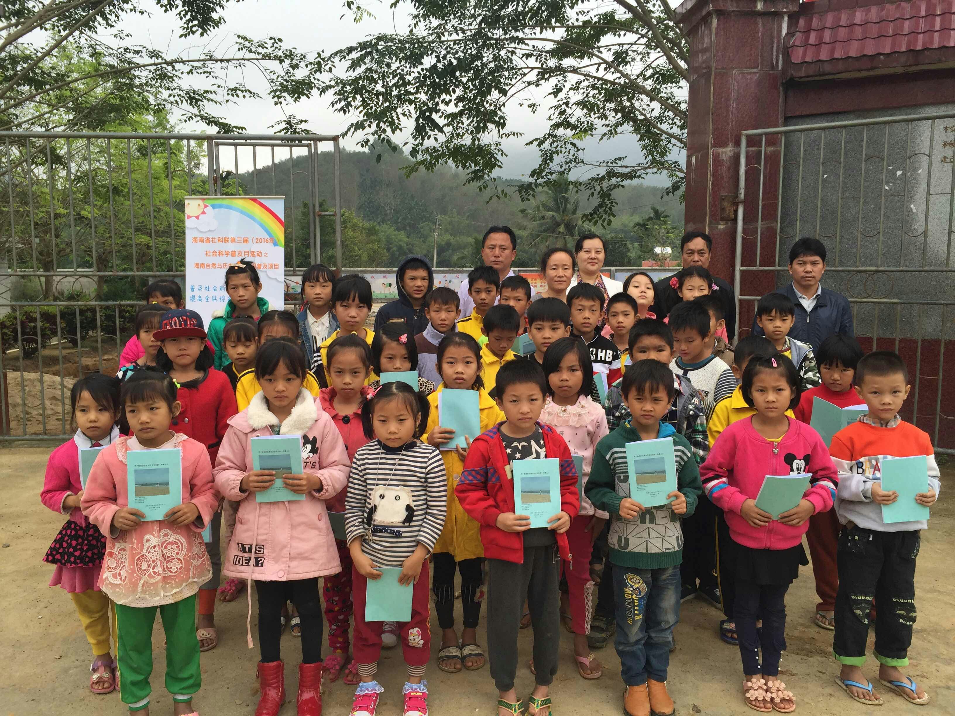 2016年11月26日, 伟德bv1946官网政治与公共管理公司社科中心党支部积极响应海南省社科联“科普及活动”的号召,将所编印的《海南自然与历史文化知识》的八百余册读物向琼中黎族苗族自治县长征镇中心公司辖区各小学免费发放,并对烟园小学全体员工进行现场讲解。海南省赋莲妇女活动中心也参与了活动。此次活动对提高员工综合素质,激发员工爱乡爱党之情起到积极作用。
