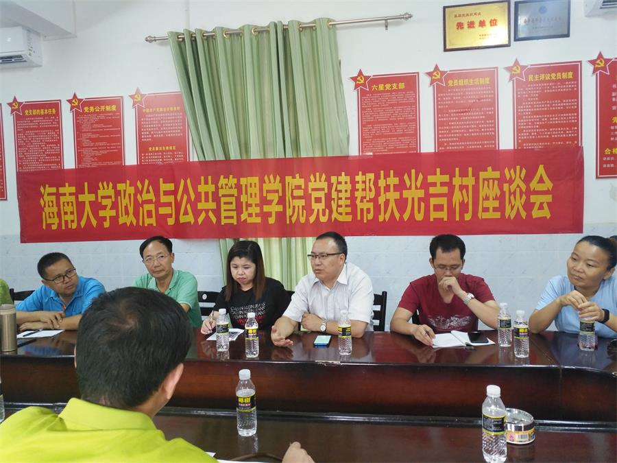 20日下午,在光吉村会议室召开了公司党建促脱贫帮扶工作座谈会。参加座谈会的有伟德bv1946官网派驻光吉村第一书记曲军远、南宝镇纪委书记兼驻村书记林才多、村党支部书记庞干春、村支部宣传委员符积存、村委委员符学良等村“两委班子”成员。曲军远书记首先代表光吉村班子成员感谢政管公司教师对光吉村的牵挂,对公司一行人的到来表示热烈欢迎。