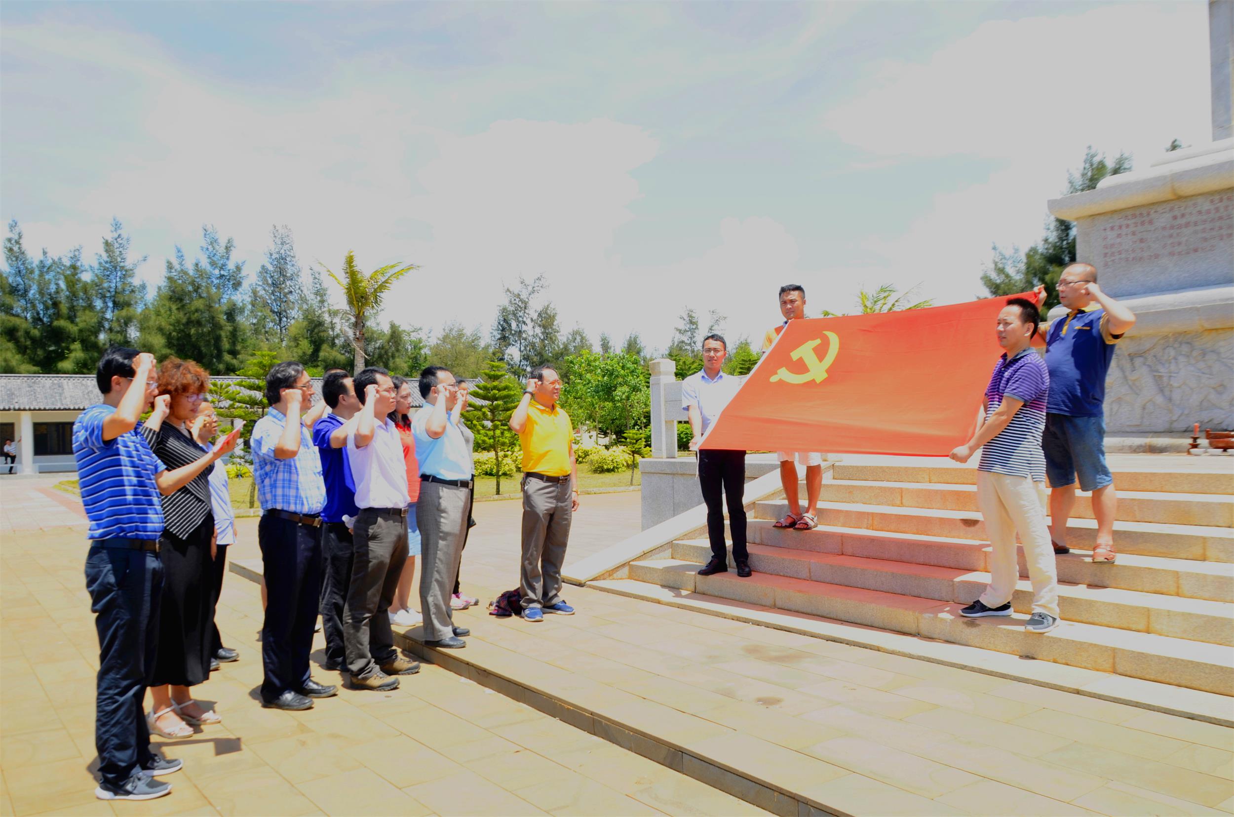 6月3日,全体教师党员前往红色基地参观——澄迈县桥头镇玉包港,瞻仰解放海南登陆作战纪念碑,浏览了包玉港登陆作战的相关历史图片,全体党员面向纪念碑、面对鲜艳的党旗深情宣誓重温了入党誓词。此活动给教师党员上了一堂生动的现场党课,革命先烈不怕牺牲的英雄事迹极大地触动了党员干部的灵魂,深感当时革命之艰辛和今日幸福生活之不易,表示不忘初心、牢记使命,誓做合格党员。