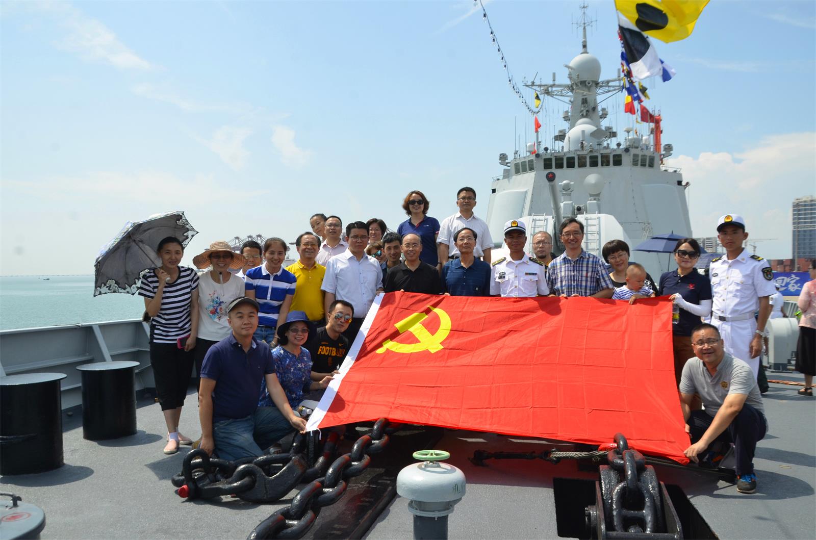 5月17日下午,在公司党委王默忠书记的带领下,政管公司党员教师一行27人前往海口秀英港参观守护祖国十三载首次“回家”的中国海军171海口号驱逐舰。在仔细浏览了中国海军发展与海口舰的图片资料之后,大家满怀激动地登上了雄姿威武的海口舰。跟随海军战士的引导,大家在舰上参观了一周,认真地倾听战士对海口舰作战能力的介绍,在整个参观过程中,大家纷纷为中国海军挺进深蓝、走向世界点赞,为我国拥有强大的军事实力感到骄傲和自豪。