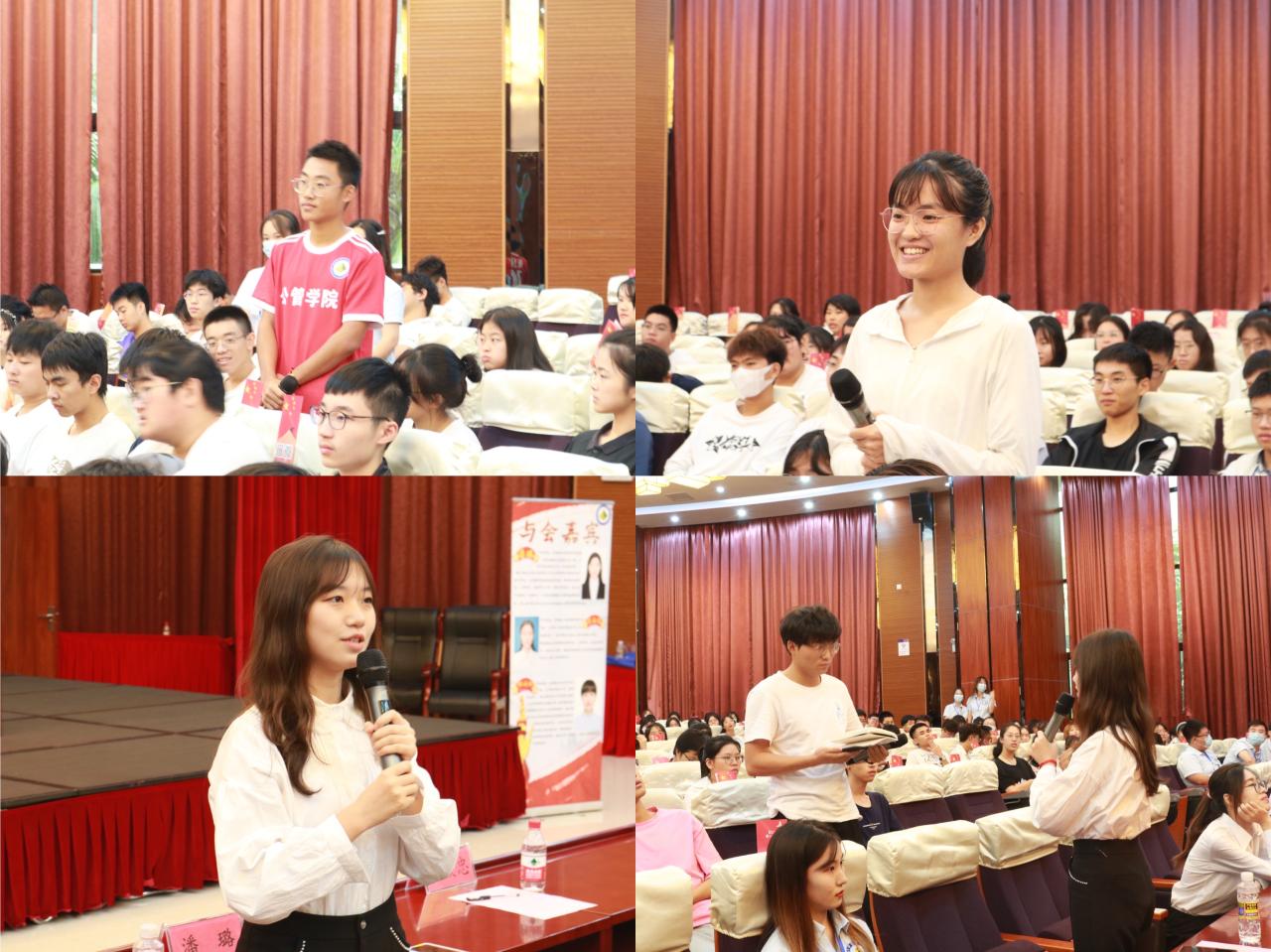 随后,2018级优秀员工代表高海霞、潘璐分享她们在专业学习、科研竞赛、推免等方面的方法和经验。郑雨桐向同学们介绍员工服务平台的工作经验和相关活动,并为新生们提供了大学学习和工作的建议。分享结束后,嘉宾与同学们互动交流,耐心地为同学们答疑解惑。